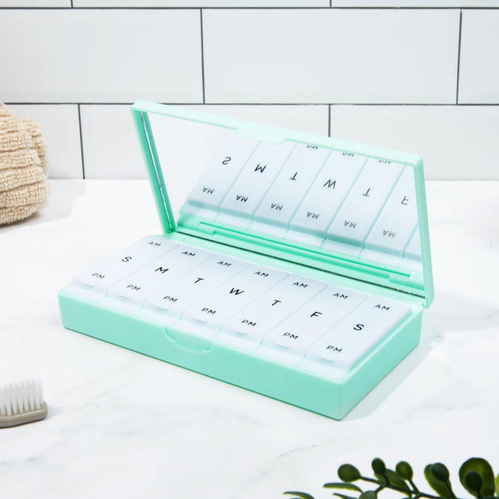 (Yes, really.) With a fresh, clean exterior, removable daily tabs, and a handy mirrored inside, we've completely redefined how a weekly pill box can look. Which means something you'll actually look forward to using on the daily.